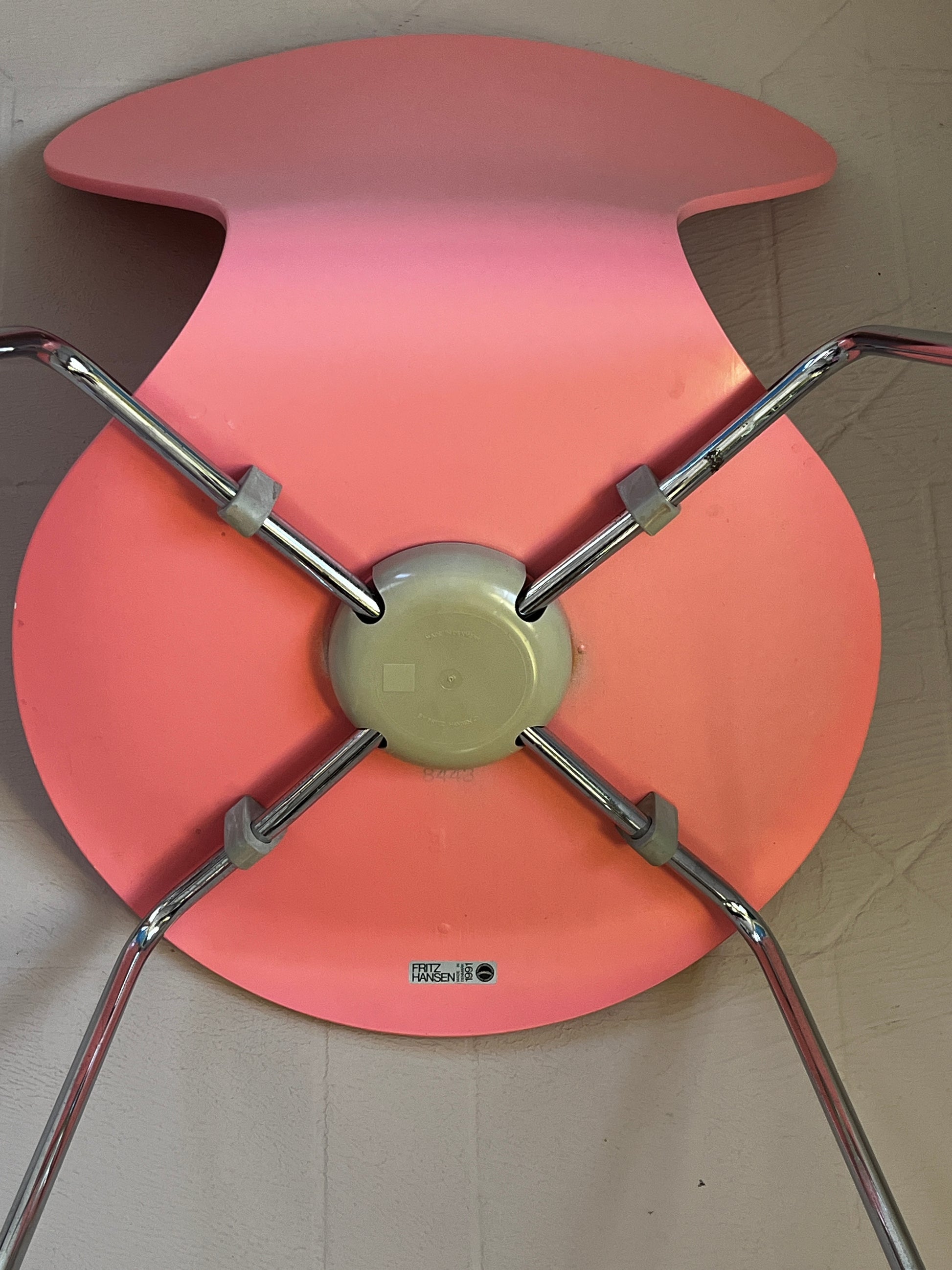 Armchair by Arne Jacobsen for Fritz Hansen in pink. Stable condition, signs of wear present.