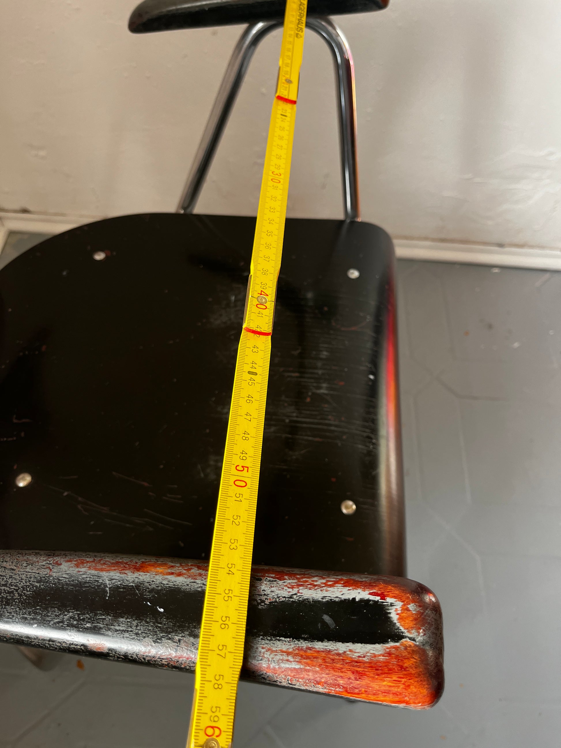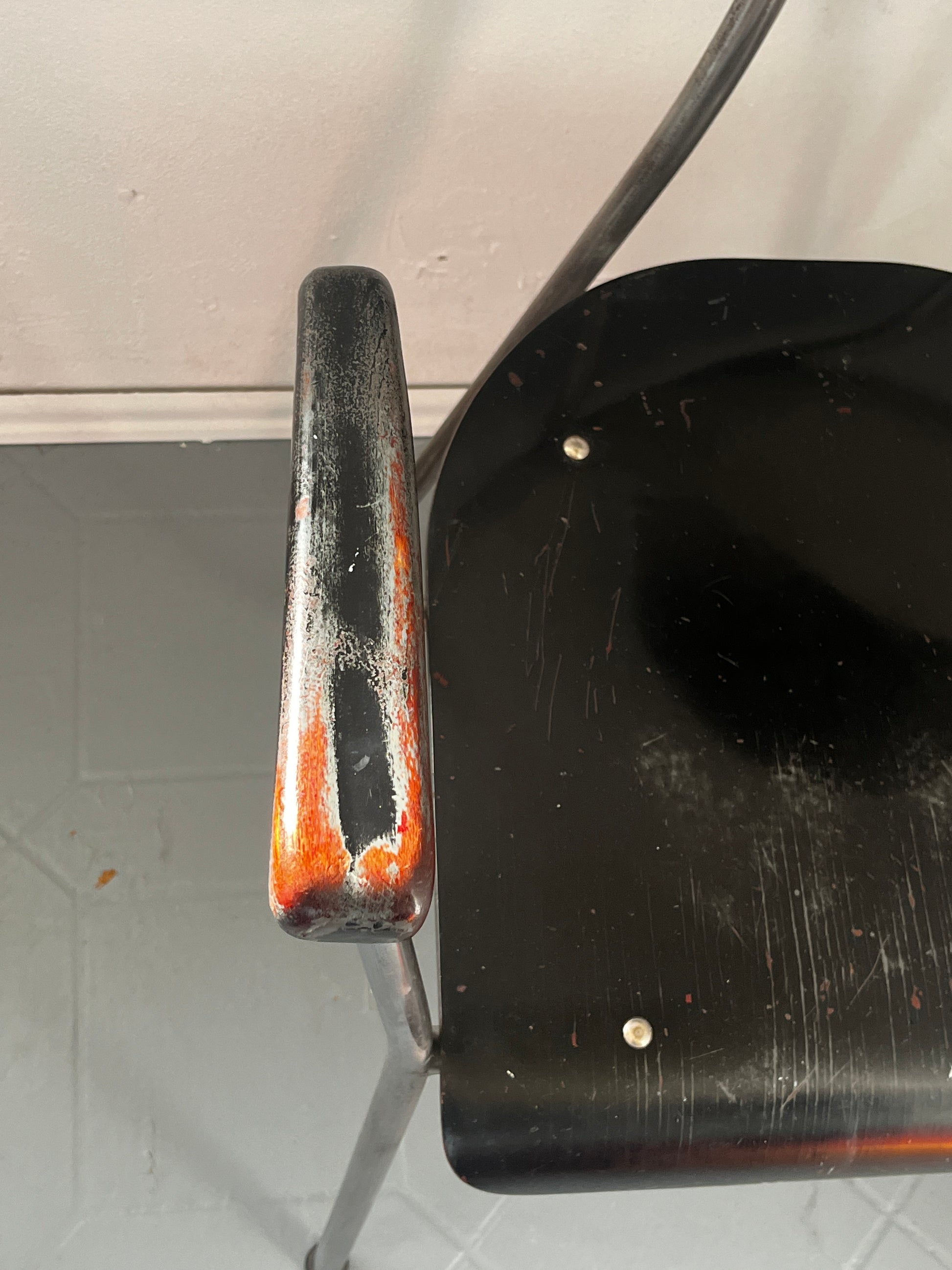 - Stahlrohrgestell mit Patina und Gebrauchsspuren