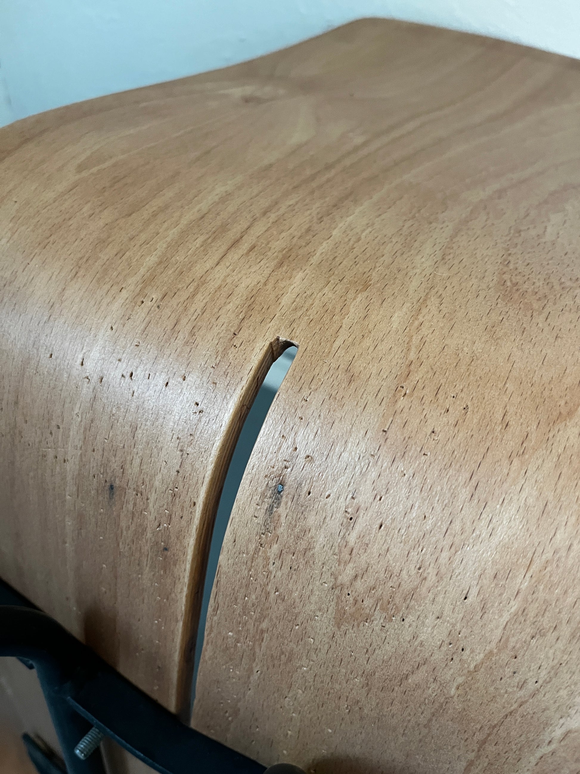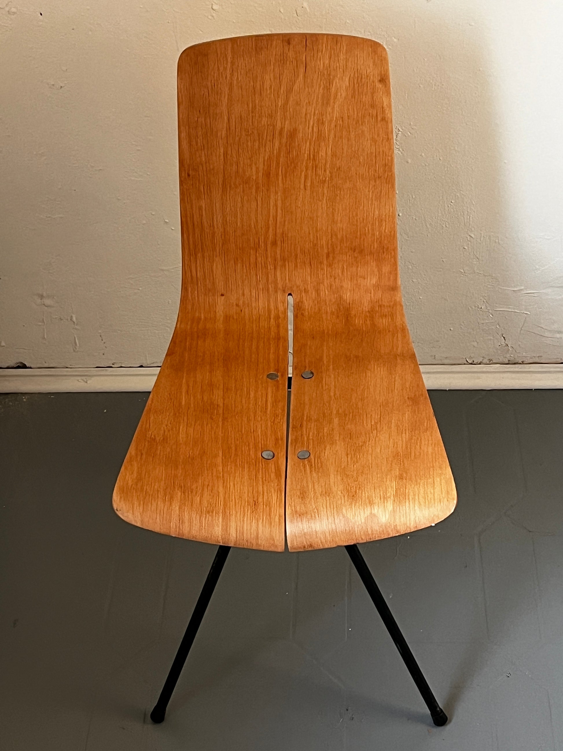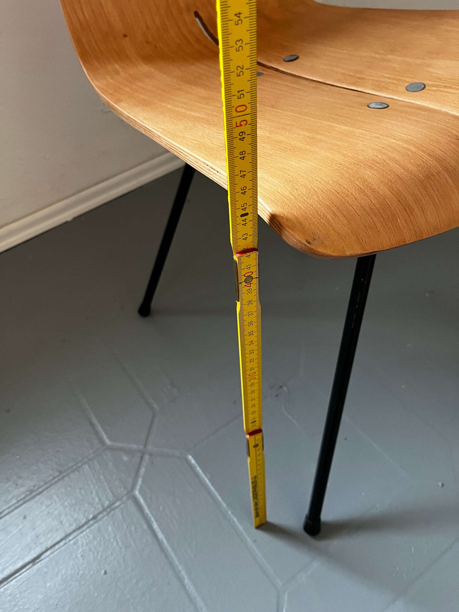 Decorative vintage armchair. Wooden shell with metal feet. Stable, restored condition.