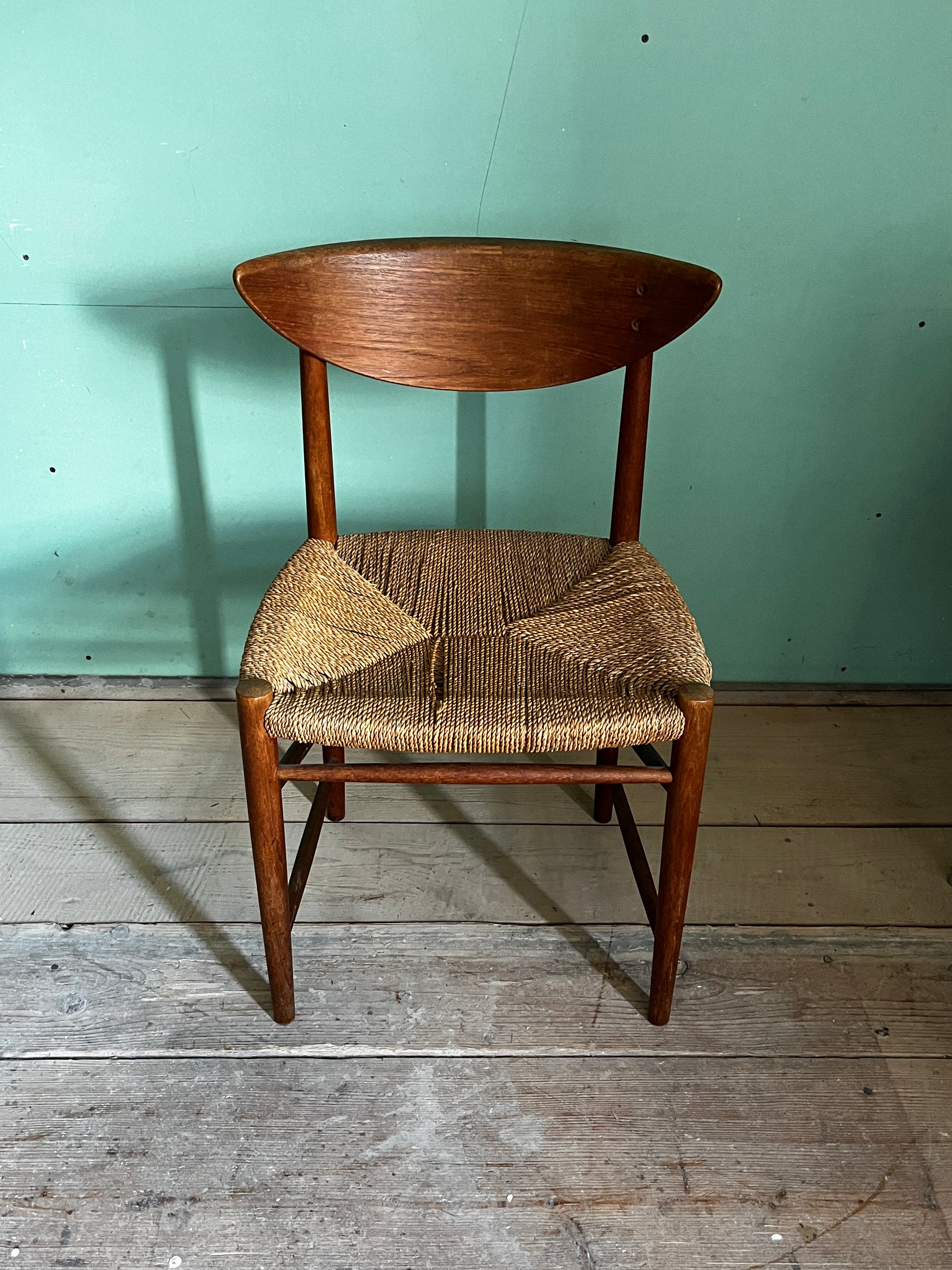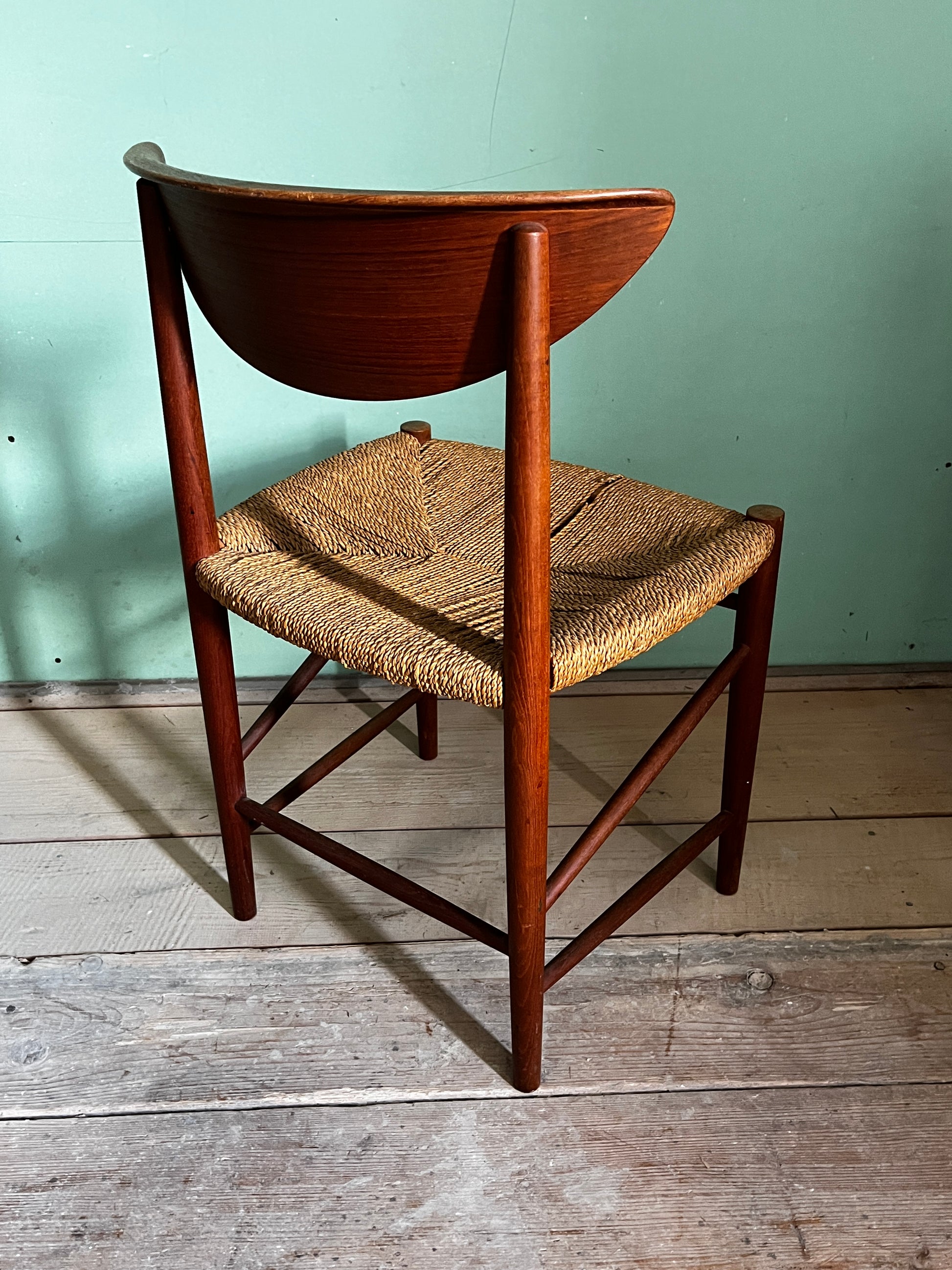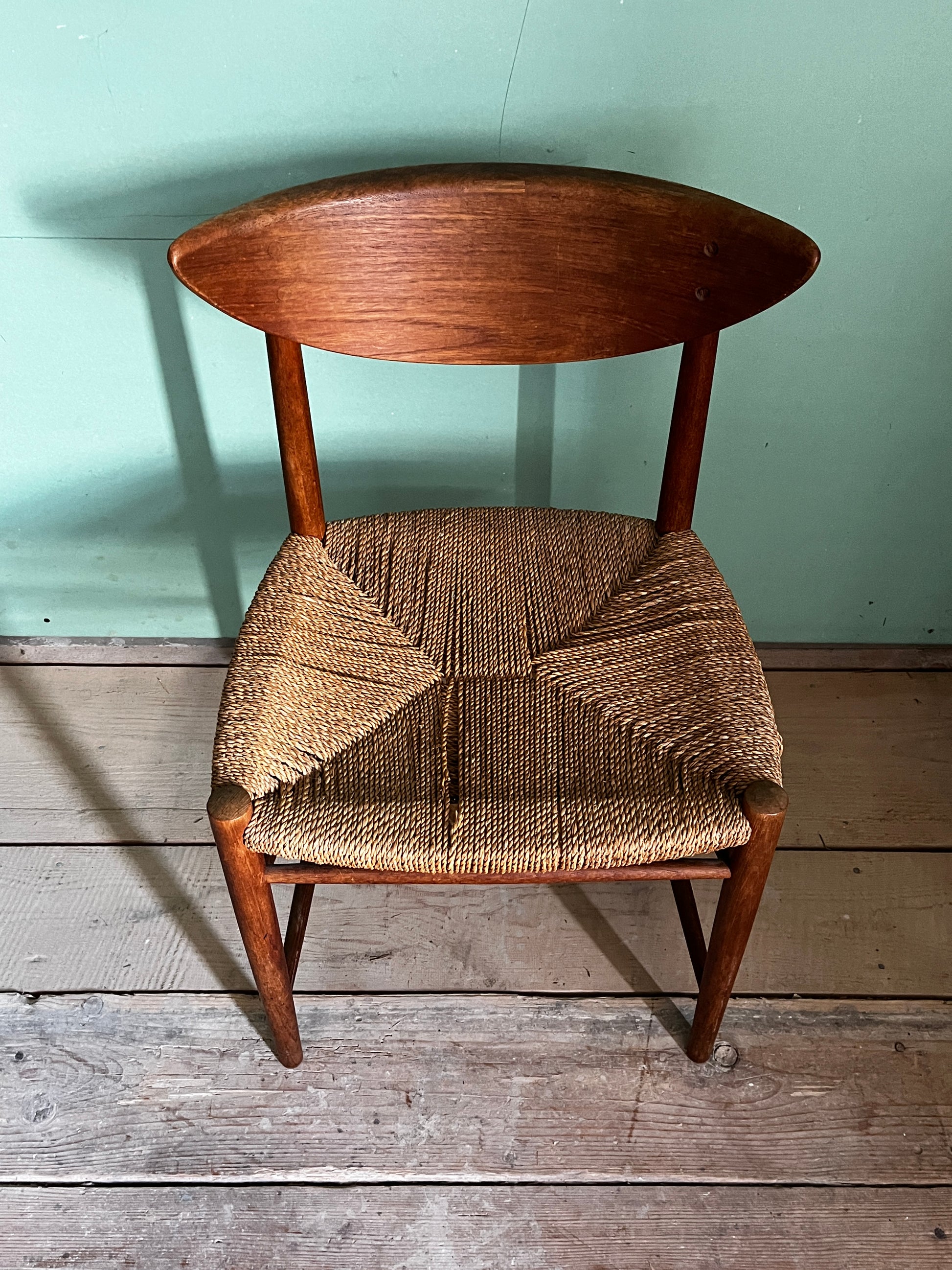 Teak Sessel mit Geflechtbezug von Peter Hvidt & Orla Molgaard. Stabiler Zustand, Gebrauchsspuren vorhanden.