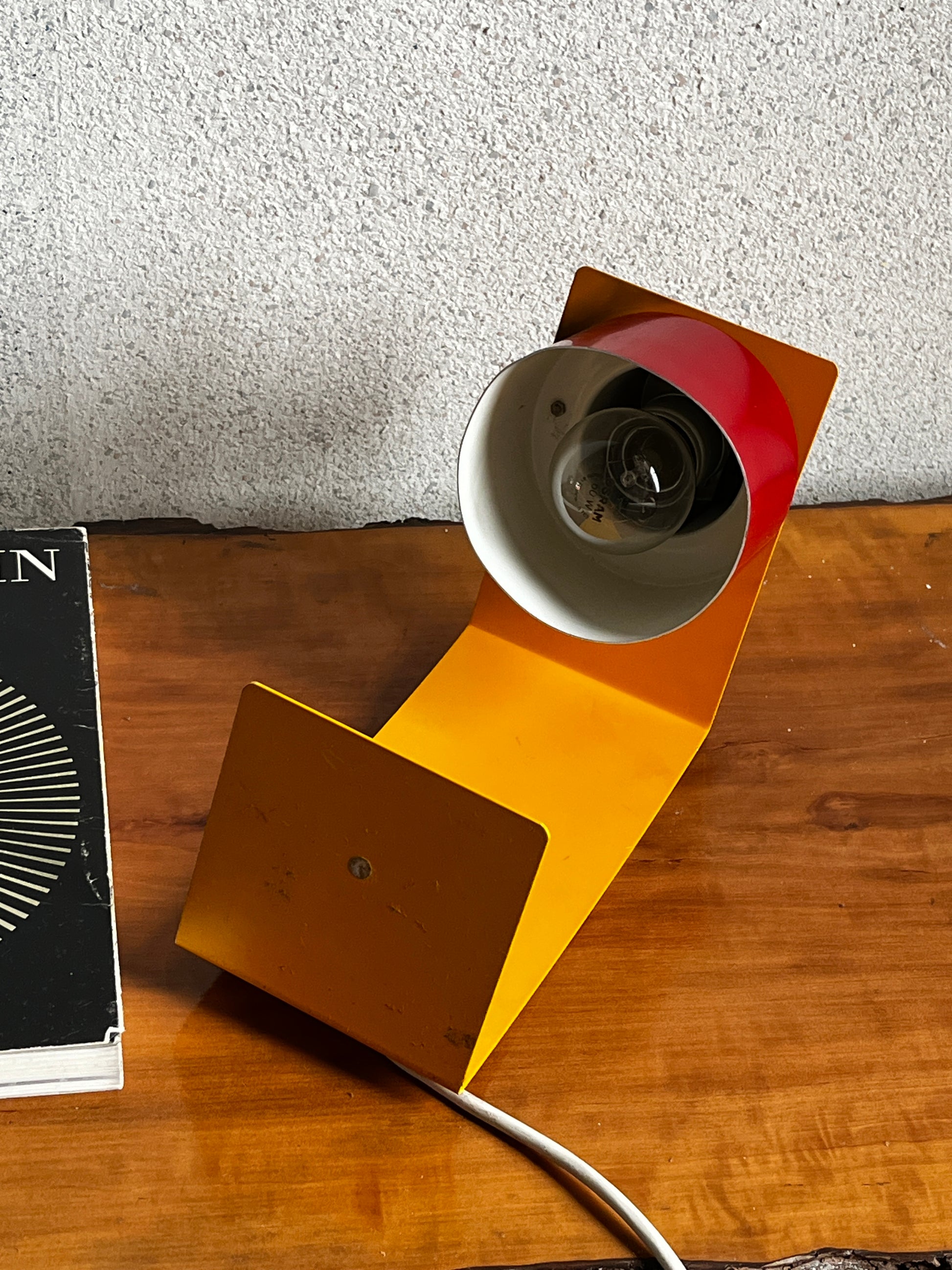 Bunte Tischlampe aus Metall. Wahrscheinlich 70er/80er Jahre. Hersteller oder Designer nicht bekannt. Guter, gebrauchter Zustand.