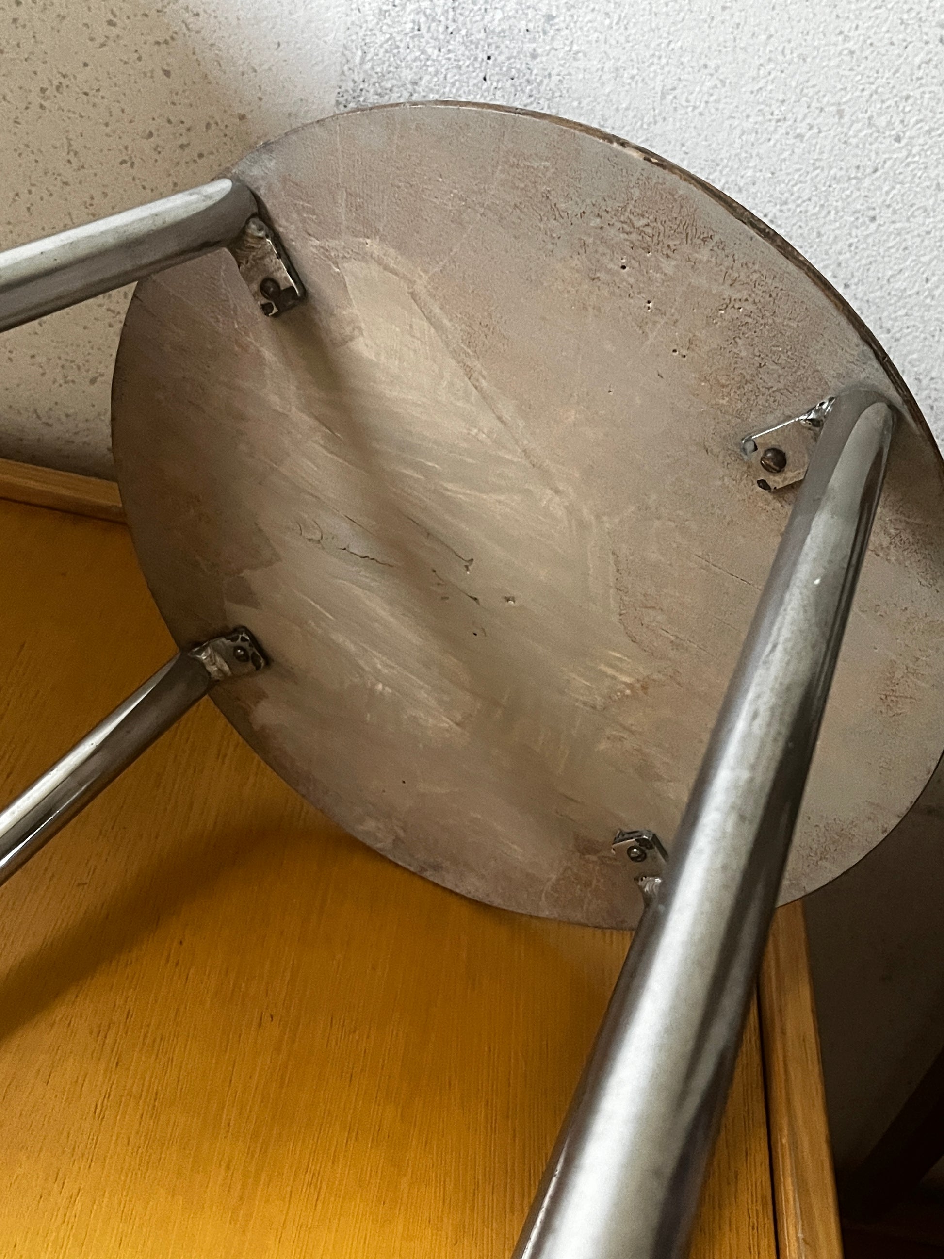 Stahlrohr Hocker. Stabiler Zustand, Gebrauchsspuren vorhanden.