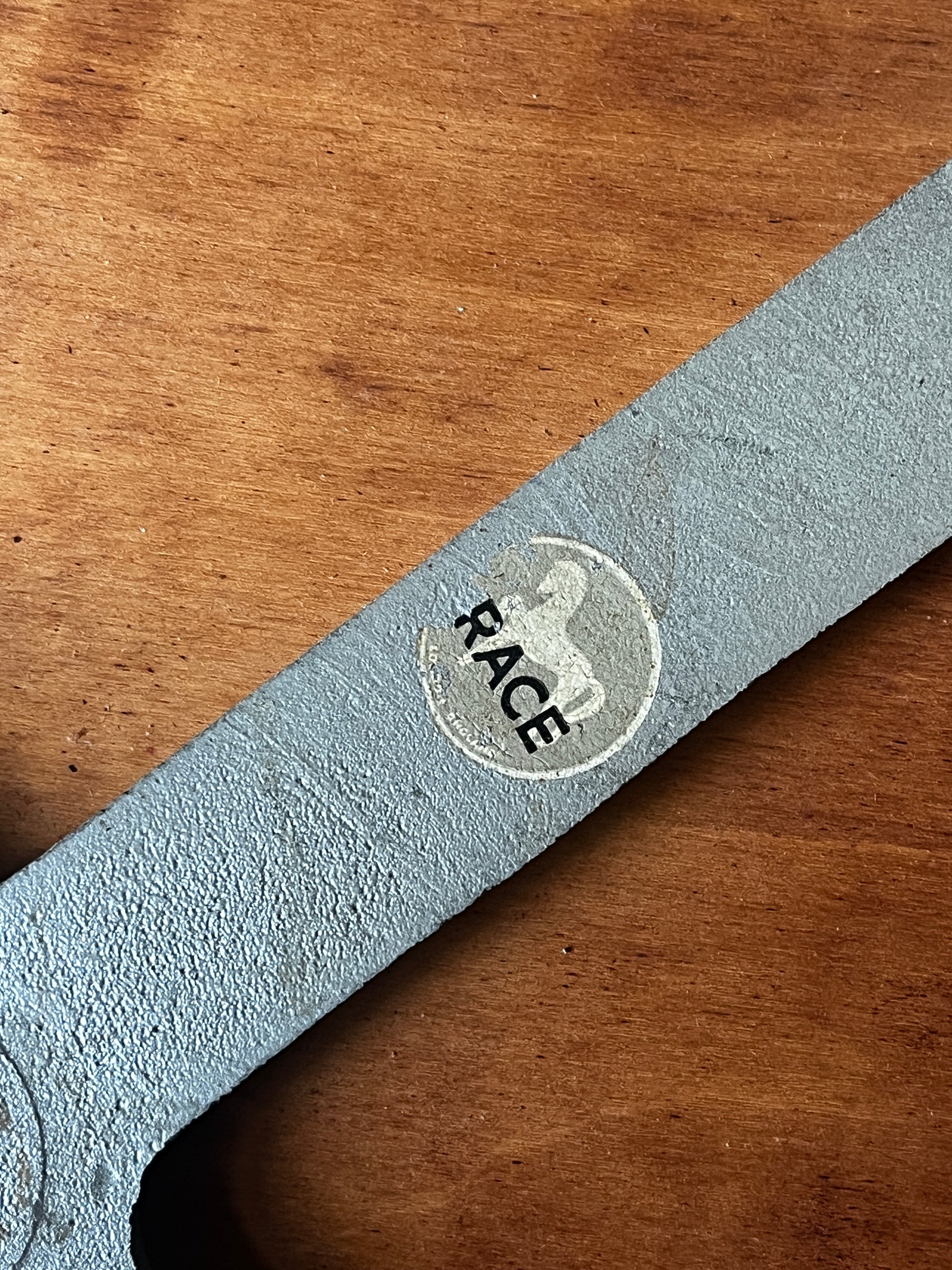 Authentischer Vintage-Stuhl aus der BA-Serie von Race Furniture Ltd mit folgenden Herstellermarkierungen (Vorderfüße BA22, Hinterfüße BA21, Unterseite BA23) und eingeprägtem "REGD DESIGN B3" Stempel und rundem Race Aufkleber. Stahlrohrrahmen mit geformter Sperrholz-Sitzschale und Rückenlehne, bezogen mit schwarzem Kunstleder/Skai. Der Bezug zeigt starke Gebrauchsspuren und Risse, die die jahrzehntelange Geschichte des Stücks erzählen. Ein ehrliches Zeugnis britischer Nachkriegs-Möbelproduktion.