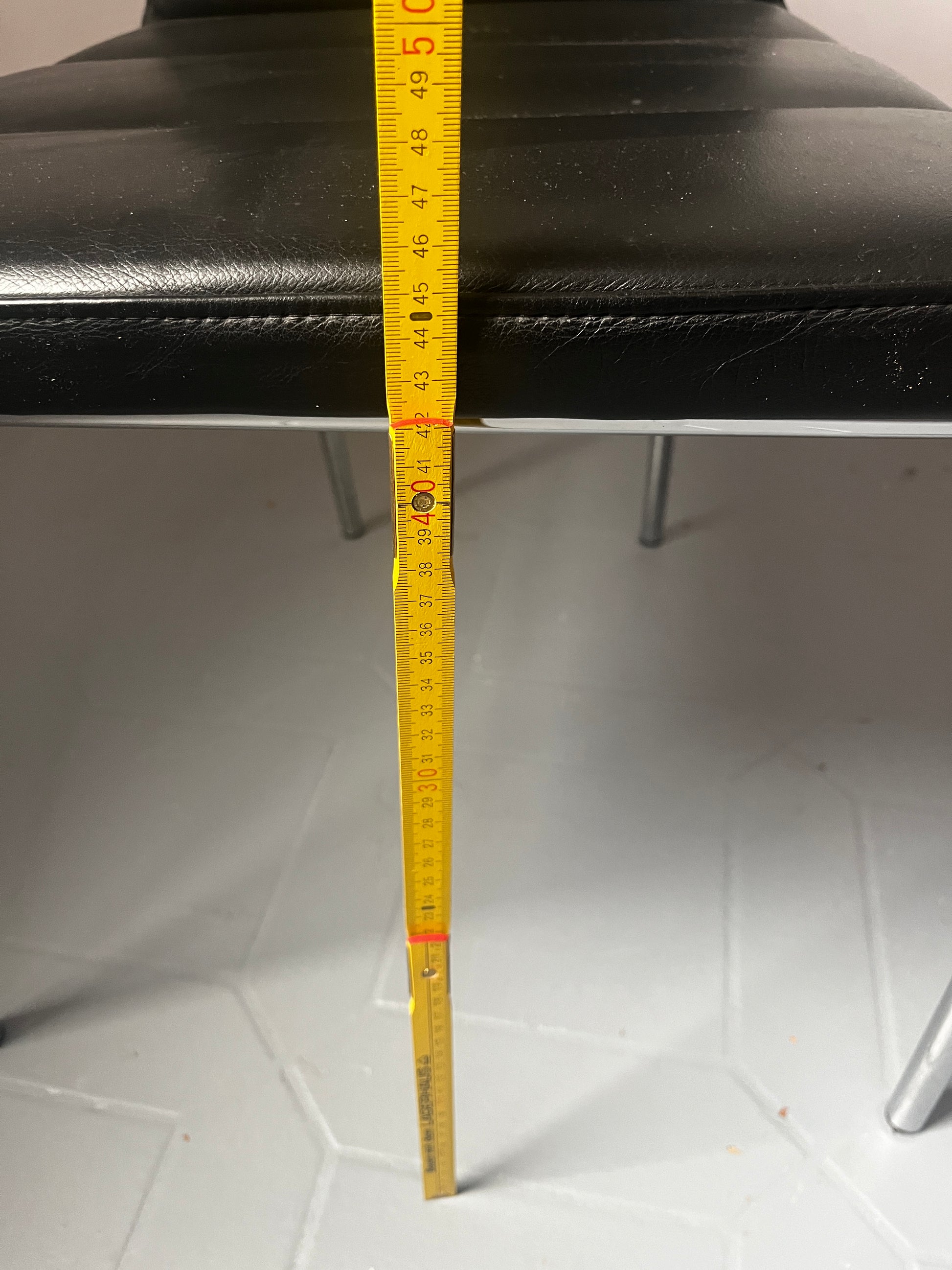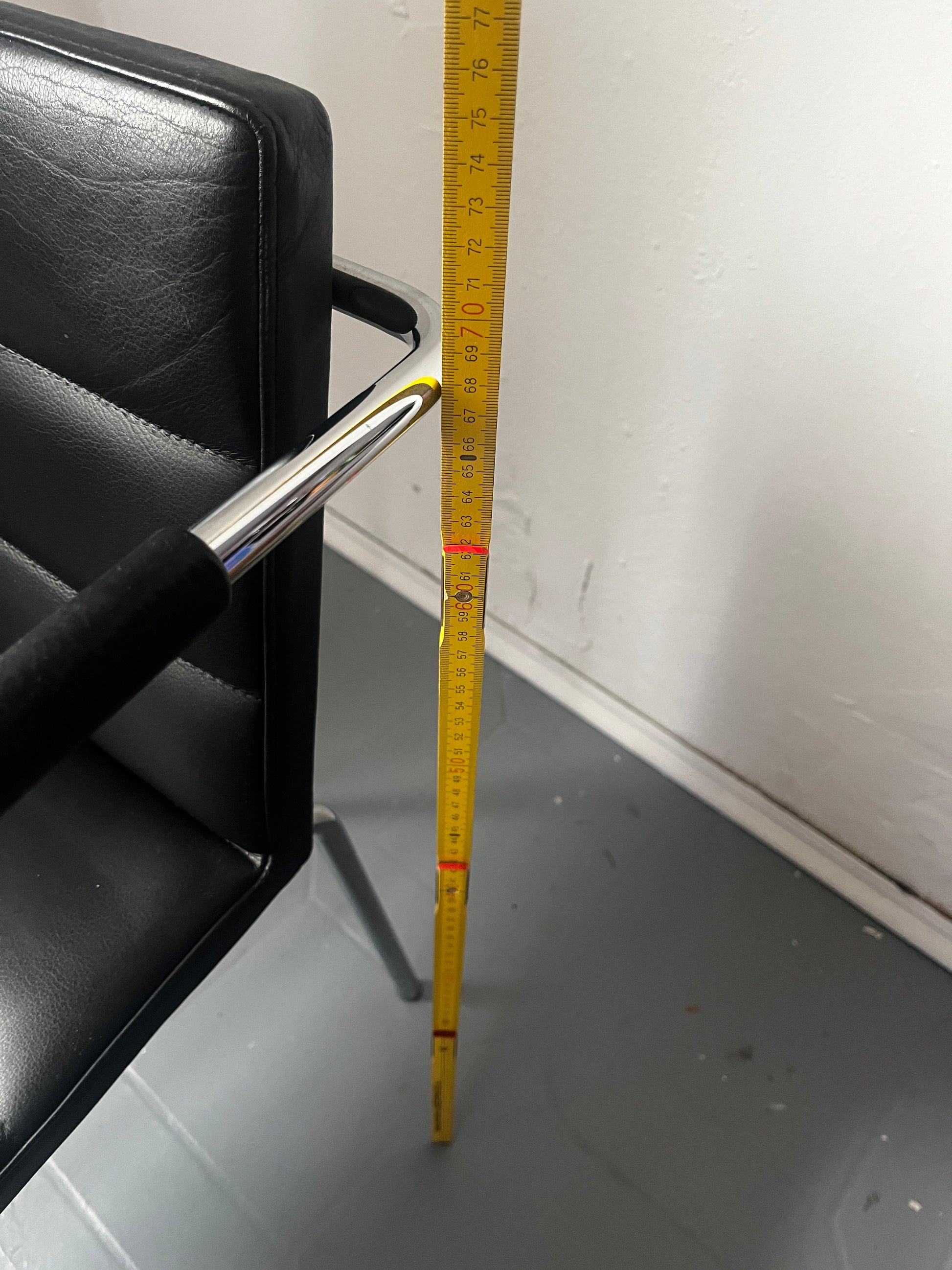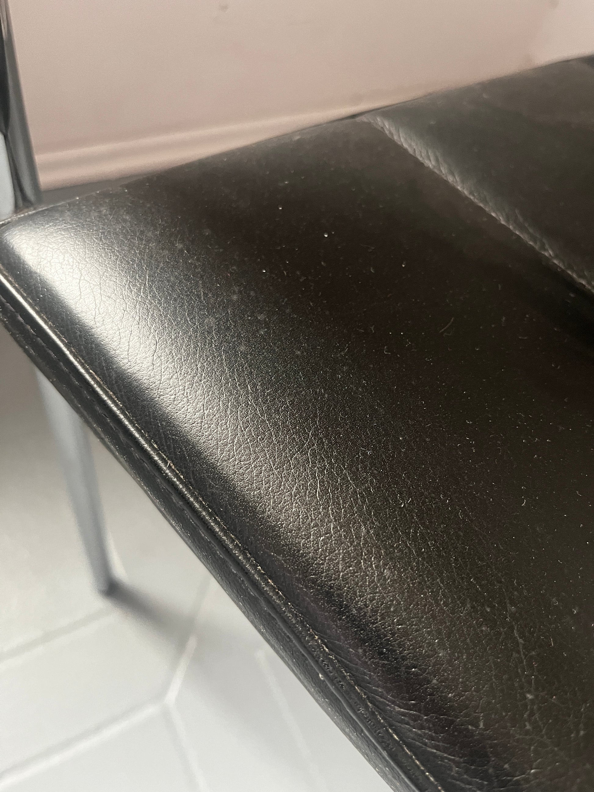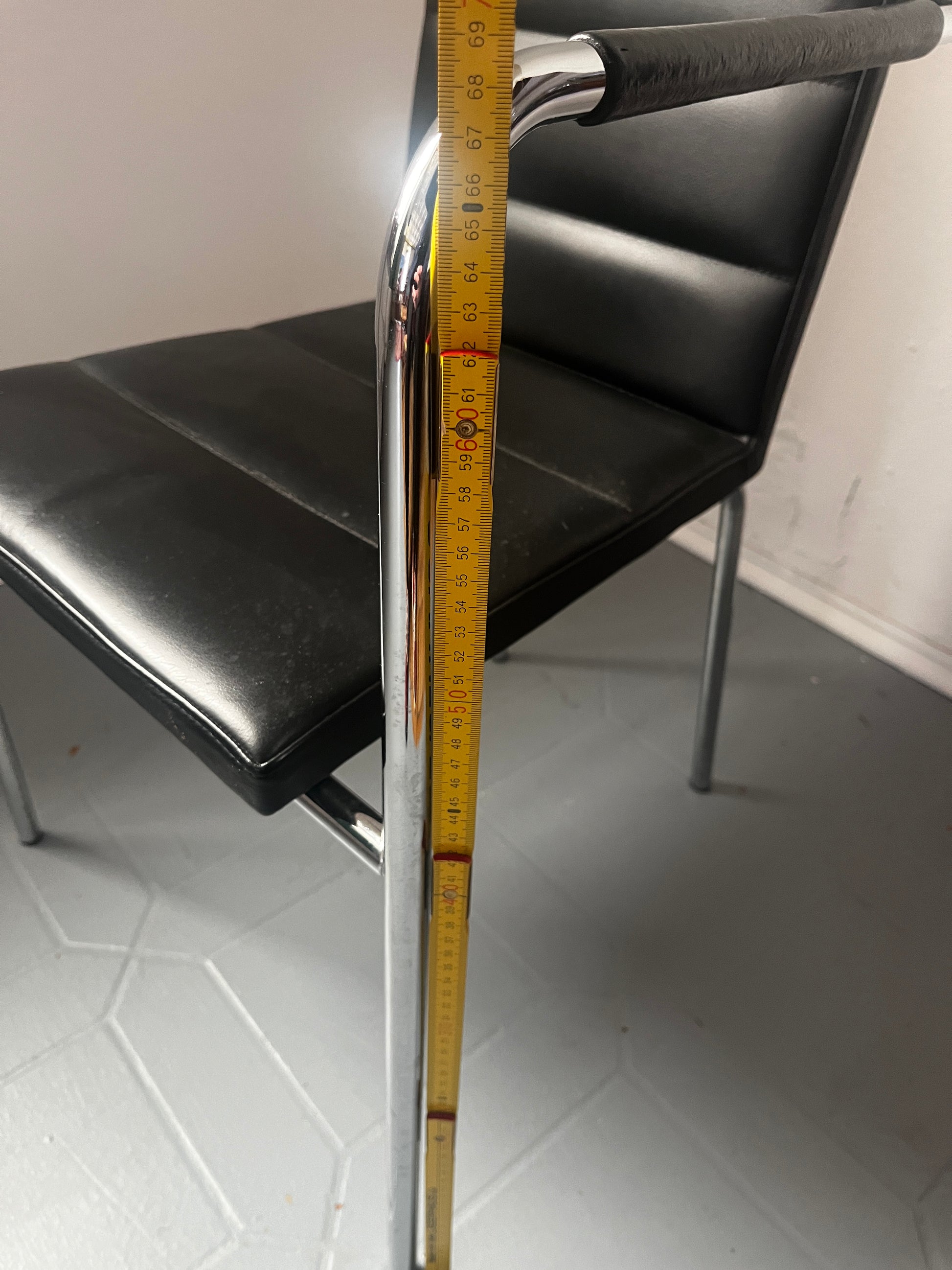Gunilla Allard Design Sessel Modell Cinema Sport. Schwarzes Leder mit horizontaler Steppung, verchromtes Stahlgestell. Gebrauchter, stabiler, guter Zustand aus dem Jahr 2000, also einer sehr frühen Produktionsphase. Auf der Unterseite gemarkt.